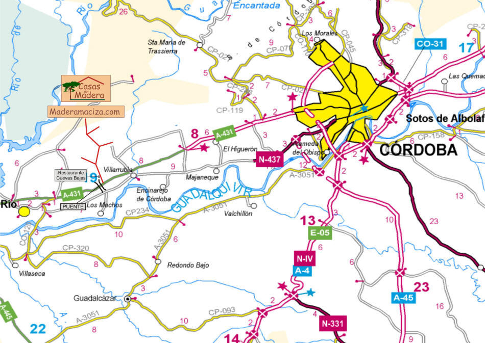Desde Córdoba, por la A-431, pasando Villarrubia a 3 Km hay un puente